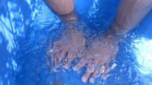 - Check the hot water again and add a little boiling water to get the temperature up again that is hot enough. Stay mindful not to burn yourself or client. Repeat the process of alternating between hot and cold water until the 4th time the foot goes into the hot water, which is the final dip.
